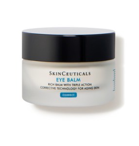 SkinCeuticals Eye Balm With Triple Age Defense $82. This rich emollient cream is great for those with mature or aging skin around the eyes. Contains vitamin A & E and helps with collagen production, lipid replacement, and hydration. Dimethicone helps to smooths under eye skin and makes for smoother concealer application.