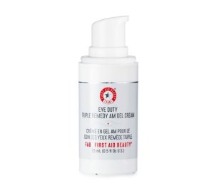 First Aid Beauty Eye Duty Triple Remedy AM. Gel Cream $36. This cooling eye cream is perfect for revitalizing eyes first thing in the morning. It addresses the concerns of firming and hydration and also targets the upper eyelid. Key ingredients include red algae for hydration and anti-aging as well as peptides for plumping.